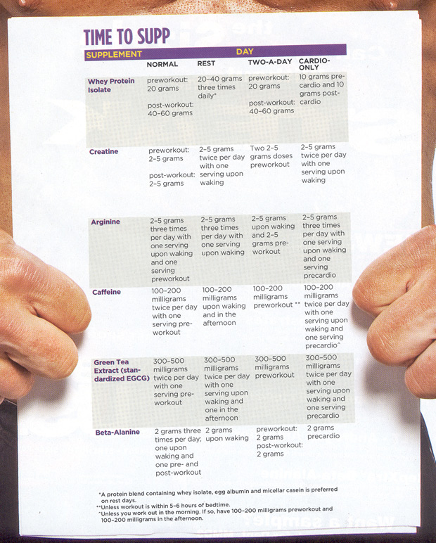 ฉลากของขวดอาหารเสริมแทบจะทุกยี่ห้อ ไม่บอกรายละเอียดเกี่ยวกับการทานให้กระจ่าง เหมือนกับปล่อยให้เราเข้าไปในป่ารก แล้วให้หาทางออกเอาเอง (คือเดาวิธีทานเอาเอง) เอาล่ะ แม้ว่าเราจะทำอะไรผิดๆไปเกี่ยวกับทานอาหารเสริมขวดนี้ไปบ้าง (เพราะฉลากไม่ได้บอกไว้ละเอียด) มันไม่เกิดอันตรายแก่ร่างกายจนถึงขั้นบาดเจ็บก็จริง แต่สำหรับนักเพาะกายที่มุ่งมั่นเอาจริงเอาจังคนหนึ่ง การที่เราจะมีความรู้เกี่ยวกับเรื่องที่ไม่ได้เขียนไว้ที่ฉลาก ก็จะทำให้เราใช้อาหารเสริมพวกนี้อย่างเต็มประสิทธิภาพในวงเงินงบประมาณที่เราสามารถควบคุมได้ ในแหล่งความรู้ต่างๆ เช่นตำรับตำราเพาะกาย ,นิตยสารเพาะกาย ต่างก็ให้ความรู้เราในเรื่องที่ว่าอาหารเสริมนั้น ประกอบด้วยอะไรบ้าง ,ทำงานอย่างไร ,ทานตอนไหนถึงจะให้ผลดีที่สุดในวันฝึก แต่สิ่งที่แหล่งความรู้พวกนี้ขาดไปคือ เขาไม่ได้พูดถึงวันที่เราไม่ได้ฝึก ,หรือวันที่เราฝึกเหมือนกัน แต่เป็นการฝึกรูปแบบอื่นที่ไม่ใช่การยกลูกน้ำหนักในโรงยิม กลยุทธ์ที่ผมจะนำเสนอต่อไปนี้ ไม่ได้พลิกแพลงอะไรมากมายเลย หนำซ้ำ เป็นสิ่งที่ควรจะต้องทำตามด้วยซ้ำ เพื่อให้การใช้อาหารเสริม "ในทุกๆวัน" ของคุณ เป็นไปอย่างเต็มประสิทธิภาพ การทานอาหารเสริมในวันพัก ใน 1 อาทิตย์ เราจะฝึกหนักๆด้วยเทคนิคโหดๆ ซึ่งยังผลให้เซลล์กล้ามเนื้อฉีกขาด (ไม่ใช่เส้นใยกล้ามเนื้อฉีกนะครับ - Webmaster) เพื่อเป็นช่องทางให้เกิดการสร้างเซลล์กล้ามเนื้อใหม่ๆขึ้นมาให้มากขึ้น ,แข็งแรงขึ้นกว่าเดิม และถ้าคุณเป็นนักเพาะกายที่สรรหาความรู้ทางวิชาการบ้าง ถึงจะไม่ถึงขั้นลึกซึ้ง คุณก็จะรู้หลักพื้นๆว่า ร่างกายไม่ได้เสริมสร้างซ่อมแซมเซลล์กล้ามเนื้อที่ฉีกขาดเหล่านั้นในวันที่คุณฝึก คือมันจะถูกสร้างในวันถัดไปต่างหาก |