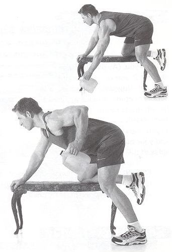 ,พยายามรักษาหลังให้ตรงและขนานกับพื้น เริ่มบริหาร ยกข้อศอกขึ้นผ่านลำตัว เมื่อถึงจุดสูงสุดแล้ว ให้ค้างเอาไว้ 2 วินาที จากนั้น ค่อยๆผ่อนขวดน้ำลงอย่างช้าๆ เมื่อบริหารครบ 1 เซทแล้ว ให้เปลี่ยนไปบริหารด้วยแขนอีกข้างหนึ่ง (บริหารครบ 2 เซท จึงนับเป็น 1 เซทใหญ่ หมายความว่า ใน 1 เซทใหญ่จะต้องบริหารทั้งข้างซ้ายและข้างขวาจนครบ เวลาบริหารให้บริหาร 2 เซทใหญ่) |