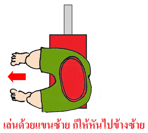 | เทคนิคคือ เวลาจับ "ที่จับ" จะต้องเหยียดแขนให้สุดจริงๆ เพื่อให้กล้ามเนื้อปีก ถูกเหยียด (คลิ๊ก) ได้มากที่สุด |