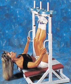 ในการบริหารท่านี้ ต้องมีเครื่องเลคเพรสธรรมดา ( ภาพบนซ้าย ) หรือเครื่องเลคเพรสแบบแนวดิ่ง ( ภาพล่างซ้าย ) อย่างใดอย่างหนึ่งเสียก่อน |