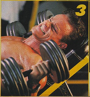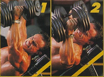 จังหวะที่ 1 - นอนบนอุปกรณ์ม้าเอียง ถือดัมเบลล์ไว้ในสองมือ