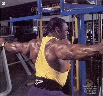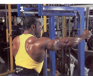 ที่ต่างกันก็คือ การนั่ง และ ทิศทางการออกแรง ซึ่งการเล่นท่า REVERSE PEC DECK จะนั่งหันหน้าเข้าไปในตัวเครื่อง ส่วนท่า Peck Deck ธรรมดา จะหันหน้าออกจากตัวเครื่อง ส่วนทิศทางการออกแรงนั้น สำหรับท่า REVERSE PEC DECK เวลาหุบแขนเข้าจะไม่ออกแรง แต่เวลากางแขนออก จะต้องออกแรง แต่ท่า Peck Deck ธรรมดา เวลาหุบแขนเข้าจะต้องออกแรง (ไปที่กล้ามอก) แต่เวลากางแขนออก ไม่ต้องออกแรง วิธีบริหาร ![]() ![]() ![]() ![]() ![]() หมายเหตุ 1.จากจังหวะที่ 1 ไปจังหวะที่ 2 และจากจังหวะที่ 2 กลับมาจังหวะที่ 1 ต้องทำอย่างช้าๆ 2.ไม่มีการหยุดที่จังหวะใดจังหวะหนึ่งเพื่อเกร็งกล้ามเนื้อเด็ดขาด ให้ทำอย่างต่อเนื่องจนจบเซท |