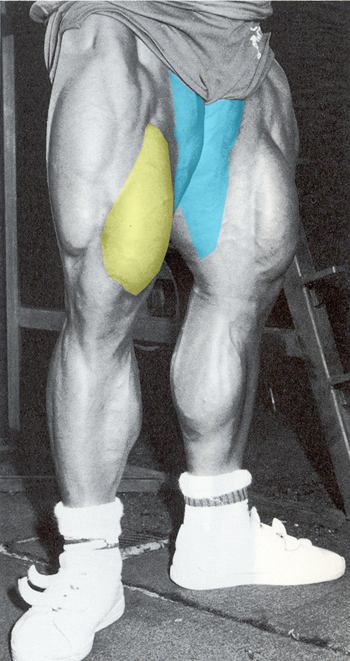 สีเหลือง รวมไปถึงกล้ามต้นขาด้านใน (Inner Thigh) หรือเรียกว่า Abductors ปรากฏตามภาพ สีฟ้า |