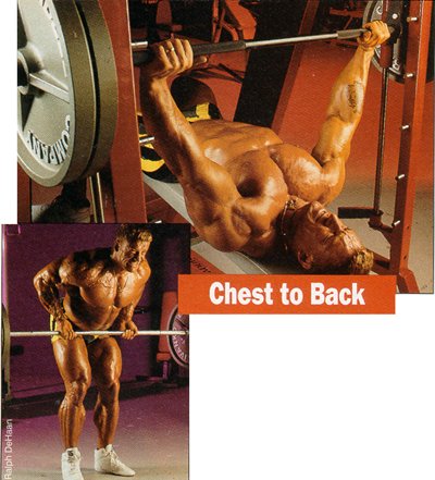 | หน้าอกกับปีก Decline Press to Reverse - Grip Barbell Row |
