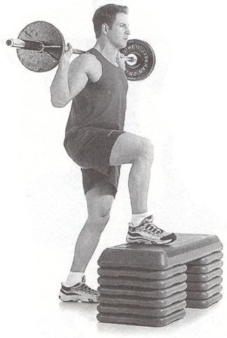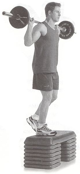 ทำซ้ำเหมือนเดิมโดยไม่ต้องเปลี่ยนขา จนเมื่อทำครบจำนวนแล้ว เช่นทำครบ 10 ครั้ง ก็ไม่ต้องหยุดพัก แล้วให้เปลี่ยนเอาเท้าซ้ายไปวางไว้บนอุปกรณ์ยกพื้นแทน แล้วทำอีก 10 ครั้ง จึงจะถือว่าเป็น 1 เซท |