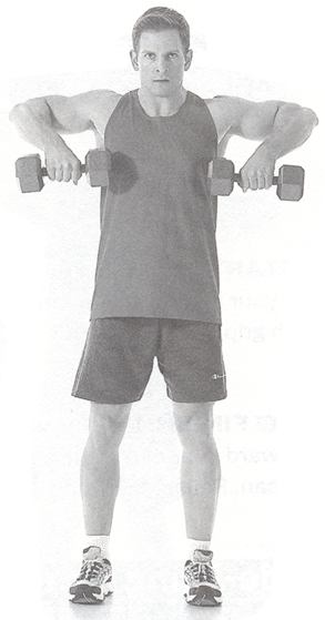 และให้หันหลังมือไปทางข้างหน้า ให้ดัมเบลล์มีตำแหน่งอยู่บริเวณด้านหน้าของ
