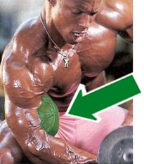 ในภาพซ้ายนี้ แสดงถึงกล้ามเนื้อไบเซบ ที่กำลังถูกเหยียด ( Stretch ) อย่างเต็มที่ |