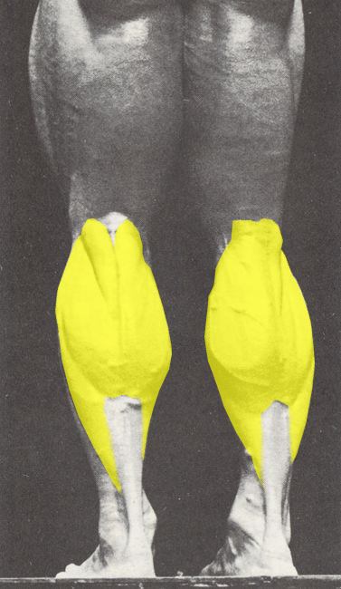 เมื่อเราหด ( contract ) กล้ามเนื้อน่อง ,ก็จะเกิดการเคลื่อนที่ คือน่องของเรา จะยกตัวเราให้สูงขึ้น (เขย่ง) เหมือนในรูปด้านซ้ายนี้ |