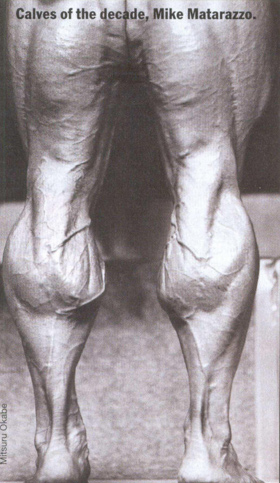 ก็คือกล้ามน่องที่มีลักษณะเหมือนเพชร แบบที่เห็นในรูปข้างบนนี้ ศัพท์สำหรับการเปรียบเทียบกล้ามน่อง กับรูปทรงของเพชรนี้ เขาจะใช้สำนวนว่า Diamond shaped calves / หรือไม่ก็ใช้เป็นคำพูดบรรยายว่า "กล้ามน่องที่เต็มไปด้วยมัดกล้าม จนหนาเป็นกองๆ และมีรูปทรงเหมือนเพชร" ซึ่งจะใช้ศัพท์บรรยายเป็นภาษาอังกฤษว่า Massive diamond-shaped mounds of muscle for the calves. |