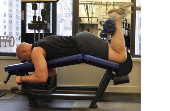 สำหรับท่าบริหารท่านี้ มีชื่อท่าว่า Inclined Lying Leg Curls