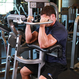 มักจะใช้คำพูดแบบนี้ว่า "ท่า Preacher Curl โดยใช้อุปกรณ์แมชชีน