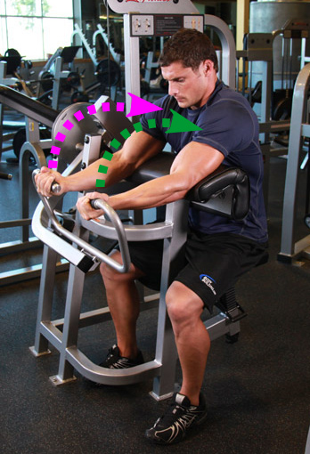 การที่นักเพาะกายผู้นี้บ่น ความหมายของมันก็คือว่า ![]() ![]() ก็คือว่า เมื่อใช้แมชชีนข้างบนนี้ บริหารท่า Preacher Curl มันก็จะทำให้การเคลื่อนที่มือ ( ของผู้บริหาร ) หรือ Rang of motion จะต้องเคลื่อนที่ไปตามที่วิศวกรผู้ออกแบบแมชชีนตัวนี้กำหนดไว้ โดยที่ผู้บริหาร ไม่สามารถเคลื่อนที่มือ ซึ่งก็คือการเคลื่อน Rang of motion ไปข้างหน้าบ้าง ข้างหลังบ้าง ซ้ายบ้าง ขวาบ้าง จากที่วิศวกรกำหนดไว้ได้เลย ( ซึ่งมันน่าเบื่อ ) การอธิบายในเวบเพจหน้านี้ ไม่ใช่การวิเคราะห์ท่าบริหารแต่ละท่านะครับ แต่เป็นการเอาท่าต่างๆมาประกอบคำอธิบาย เพื่อให้เห็นว่าเวลาที่ต้นฉบับเขาเอาศัพท์คำว่า Rang of motion มาใช้นั้น เขาเอามาใช้ในกรณีไหนบ้าง นั่นเองครับ |