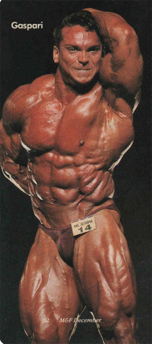 ค้นคว้า - หาข้อมูล : ณัฐวุฒิ ลีลาพีรพงศ์ - - - - - - - - - - - - - - - - - - - ชื่อภาษาต่างประเทศ : Rich Gaspari ชื่อภาษาไทย : ริช กาสปาริ นามแฝง หรือ ฉายา : The Itch ,The Dragon Slayer วันเดือนปีที่เกิด : 16 พฤษภาคม พ.ศ.2506 / May 16, 1963 สถานที่เกิด : New Brunswick , New Jersey , United States ที่อยู่ปัจจุบัน : Toms River , New Jersey , United States ความสูง : 172.5 เซนติเมตร / 5 ฟุต 8 นิ้ว น้ำหนัก : 111.1 – 115.7 กก. ( 245 - 255 ปอนด์ ) ข้อมูลที่น่าสนใจ : การได้รับรางวัล Mr. Universe เมื่ออายุ 21 ปี - กลายเป็นผู้ชนะอายุน้อยที่สุดในประวัติศาสตร์ ได้ใบรับรองเป็นนักเพาะกายอาชีพ : จากการประกวดในรายการ 1985 IFBB Night of Champions ( ขณะที่อายุ 22 ปี ) ข้อมูลข้างบนนี้ อ้างอิงจาก : https://en.wikipedia.org/wiki/Rich_Gaspari และ https://www.greatestphysiques.com/male-physiques/rich-gaspari/ - - - - - - - - - - - - - - - - - - - ประวัติโดยสังเขป : ช่วงปีแรก เกิดและเติบโตในนิวเจอร์ซี่ย์สหรัฐอเมริกา Rich เติบโตขึ้นมาความหลงใหลซุปเปอร์ฮีโร่ในหนังสือการ์ตูน เช่นฮีโร่แบทแมนซูเปอร์แมนและเดอะฮัลค์ เขาเริ่มหลงใหลในร่างกายของพวกเขาตั้งแต่อายุยังน้อยและต้องการสร้างร่างกายที่คล้ายกัน ไม่นานจนกระทั่ง Rich เริ่มอ่านนิตยสารเพาะกายด้วยความหลงใหลในการเพาะกายตั้งแต่อายุ 12 หลังจากที่ Arnold Schwarzenegger และ Lou Ferrigno ทำให้เขาตกตะลึง เขาก็เริ่มค้นคว้าวิธีพัฒนาร่างกายของเขา ที่จุดนี้เขาพบว่า ตัวเองมีเม็ดเลือดขาวน้อย และได้รับคำแนะนำจากแพทย์เพื่อเริ่มยกน้ำหนัก ตอนอายุ 15 ปีในปี 1978 Rich เข้าสู่ยิมตั้งใจที่จะเอาชนะจุดอ่อนของเขาและปั้นร่างกายในฝันของเขา การเพาะกาย หลังจากฝึกปีแรกของเขา ฝึก 6 วันต่อสัปดาห์ Rich รับน้ำหนักได้ 60 ปอนด์ที่น่าประทับใจ Rich อุทิศชีวิตให้กับการออกกำลังกายโดยมุ่งไปที่การก้าวขึ้นบนเวทีในฐานะคู่แข่ง “ฉันหนัก 110 ปอนด์ และน้ำหนักขึ้นไปถึง 170 ปอนด์ หลังจากหนึ่งปีของการฝึกฝน ดังนั้นร่างกายของฉันตอบสนองอย่างรวดเร็วด้วยการฝึกยกน้ำหนัก มันเหมือนกับว่าฉันเริ่มที่จะได้รับกล้ามเนื้อทันที" การแข่งขันครั้งแรก 5 ปีหลังจากเริ่มต้นการเดินทางด้วยการออกกำลังกาย Rich ได้พัฒนาร่างกายที่ทรงพลัง เขารู้สึกพร้อมที่จะเริ่มการแข่งขันและเข้าสู่การแสดงครั้งแรกของเขา - 1983 NPC Junior Nationals. แม้ว่าเขาจะไม่มีประสบการณ์ Rich อยู่เหนือรุ่นเฮฟวี่เวทและได้รับถ้วยรางวัลแรกในการปรากฏตัวครั้งแรกของเขา แต่น่าประทับใจมากขึ้นอีก เขาได้รับรางวัลโดยรวมทุกประเภท นี่เป็นแรงผลักดันให้เขาต้องเพาะกายต่อไป Pro Card Rich ไม่ลังเลที่จะเข้าร่วมการแข่งขันมากขึ้น ในปีถัดไปเขาปรากฏตัวอีก 4 รายการเพิ่มรางวัล 3 รายการในคอลเล็กชันของเขา แต่นั่นไม่ใช่ทั้งหมด หลังจากชนะการแข่งขันระดับโลก IFBB Amateur Championships ในปี 1984 Rich ได้รับรางวัล Pro Card อันทรงเกียรติ เพียงหนึ่งปีในอาชีพการแข
