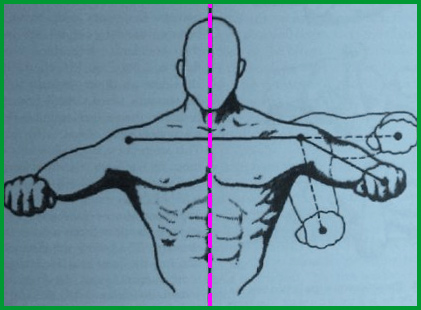 โดยแนวของข้อศอก อยู่ในแนวของ