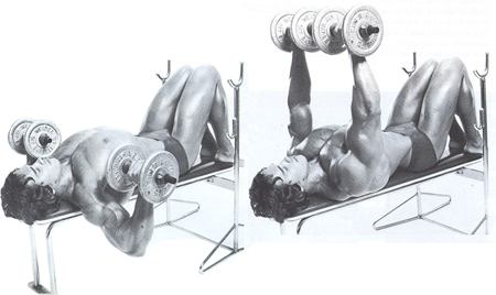 | (ภาพบน) นอนดันหน้าอกบนม้าราบ ด้วย"ดัมเบลล์" |