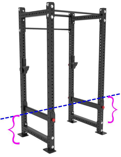ประโยคที่ว่า... ในส่วนที่เป็นตัวหนังสือสีแดงในประโยคข้างบนนี้ ก็คือการพูดถึงตัว Power Rack ที่ปรับระดับตัว Rack สำหรับวางบาร์เบลล์ ให้มีความสูงจากพื้นขึ้นมา เท่ากับความสูง "ครึ่งหน้าแข้ง" ของผู้ฝึก ( ซึ่งก็คือความสูงของ ปีกกาสีม่วง ในภาพข้างบนนี้นั่นเอง ) คราวนี้ เรามาดูอีกส่วนหนึ่งของประโยคกันนะครับ |
