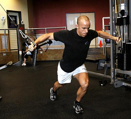 | One Arm Cable Lateral Stretch : ( ภาพบน ) สมมติว่าวันนี้คุณต้องฝึกกล้ามบ่า และกล้ามหัวไหล่ / เราจะไม่พูดถึงว่าคุณจะฝึกกล้ามบ่าและหัวไหล่นั้นอย่างไร แต่เอาเป็นว่า สมมติว่าตอนนี้คุณบริหารกล้ามบ่าและหัวไหล่จนจบครบทุกท่าแล้ว ทันทีที่คุณบริหารกล้ามบ่าและหัวไหล่จนจบครบทุกท่าแล้ว ก็ให้คุณใช้เทคนิค E.F.S. นี้ทันที ด้วยการไปยืนหันหลังให้กับอุปกรณ์แมชชีน ย่อตัวลงเพื่อใช้ "มือซ้าย" จับไปที่ Handle เหมือนกับว่าคุณกำลังจะบริหารท่า Cable Front Raise ( ดังที่เห็นใน จังหวะที่ 1 ข้างบนนี้ ) โดยดูแผ่นน้ำหนักที่ใช้ว่าต้องให้หนักมากพอ คืออย่าเบาเกินไป จากนั้นก็ให้ยืดตัวขึ้น แล้วพยายามเอนตัวไปข้างหน้าเล็กน้อย ( ดังที่เห็นใน จังหวะที่ 2 ข้างบนนี้ ) แล้วปล่อยให้แรงโน้มถ่วงของโลก ดึงมือคุณผ่านสายสลิง ,ผ่าน "ที่จับ หรือเรียกว่าHandle" ( แรงโน้มถ่วงของโลก จะดึงแผ่นเหล็กลง / และแผ่นเหล็กนี้ ก็เชื่อมติดกับสายเคเบิลที่มี "ที่จับ" / และคุณก็กำลังจับ "ที่จับ" นั้นอยู่ในมือ / นั่นก็หมายความว่า คุณกำลังออกแรงต้านกับแรงโน้มถ่วงของโลก ด้วยการออกแรงต้านกับ "ที่จับ" ที่อยู่ในมือคุณนั่นเอง ) / ซึ่ง ณ.ตอนนี้ คุณจะรู้สึกตึงที่บริเวณบ่าและหัวไหล่ข้างซ้ายของคุณ ค้างจังหวะไว้ใน จังหวะที่ 2 นี้ ตั้งแต่ 30 - 60 วินาที เสร็จแล้วจึงค่อยผ่อนตัวลง กลับไปสู่ จังหวะที่ 1 ใหม่ ให้ทำซ้ำอีกครั้ง แต่คราวนี้ เลื่อนมือที่จับ Handle อยู่ เอาไปไว้บริเวณตรงกลางของหลังของคุณ ( ไม่มีภาพให้ดูครับ - เขาเขียนแต่เพียงว่า your hand directly behind your back ) แล้วก็เอนตัวไปข้างหน้า แล้วก็ทำค้างอยู่ใน จังหวะที่ 2 อีก ให้ทำซ้ำอีกครั้ง แต่คราวนี้ เปลี่ยนเป็น "มือขวา" จับ Handle |