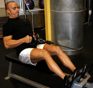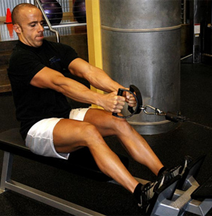 | Seated Cable Rows Stretch: ( ภาพบน ) ให้เลือกน้ำหนักที่ใช้สำหรับบริหารท่า Seated Cable Rows ที่บริหารได้ 4 - 6 reps แล้วหมดแรงพอดี จากนั้น ให้ออกแรงจากกล้ามหลัง โดยเฉพาะส่วนของ Shoulder Blades เพื่อดึง "ที่จับ" มาที่บริเวณท้องน้อย เหมือนที่เห็นในภาพ จังหวะที่ 2 ในภาพข้างบนนี้ จากนั้น ค่อยๆผ่อน "เฉพาะแขน" ให้เหยียดตรงออกไป โดยที่ "ไม่เอนตัวไปทางข้างหน้า" / ให้ผ่อนแขนออกไปจนแขนเหยียดตรง ไม่สามารถเหยียดไปได้มากกว่านั้นอีกแล้ว เหมือนที่เห็นในภาพ จังหวะที่ 3 ในภาพข้างบนนี้ / แล้วก็ค้างอยู่ใน จังหวะที่ 3 นี้เป็นเวลา 30 - 60 วินาที |
