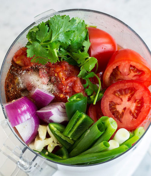 * * * คุณสามารถใช้เครื่องปั่น ( Blender ) ในการทำซัลซ่าได้ * * * หรือถ้าไม่ใช่เครื่องปั่น คุณก็ใข้มือสับผักและมะเขือเทศก็ได้ โดยสับไป แล้วก็คนไป เก็บได้นานเท่าไร? ซัลซ่าที่เราทำเองนี้ ถ้าใส่ชามและผนึกอย่างดี เอาไปใส่ช่องฟรีซเซอร์ในตู้เย็น ก็จะเก็บได้ 1 อาทิตย์ ควรเลือกมะเชือเทศ "กระป๋อง" แบบไหน? ควรใช้มะเชือเทศเปล่าๆ ( แบบกระป๋อง ) ที่ไม่ได้ปรุงอะไร ( canned plain tomatoes ) หรืออาจจะใช้มะเขือเทศย่าง ชนิดกระป๋อง ( canned fire roasted tomatoes ) ก็ได้ |