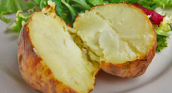 ตามปกติ มัน จะมีหลายรูปแบบ เช่นว่า มันหวาน ฝรั่งจะใช้คำว่า sweet potato ,ถ้าเป็นมันเทศ ก็จะใช้คำว่า yams แต่ถ้าใช้คำว่า "Potato" โดดๆ ก็จะหมายถึงมันฝรั่งธรรมดาดังในรูปข้างบนนี้ครับ และเมื่อพูดถึงการปรุงมันฝรั่ง ถ้าปรุงแบบนึ่ง ก็จะใช้คำว่า baked potato โดยนึ่งเป็นลูกๆเลย แต่ในกรณีที่ตารางทานอาหารของนักเพาะกาย บอกมว่า ให้ทาน potato 11 ออนซ์ ก็จะหมายความว่า เอามันฝรั่งธรรมดา (ที่ไม่ใช่มันหวาน และไม่ใช่มันเทศ) มาปรุงแบบไหนก็ได้ คืออาจเอามานึ่งแล้วผ่าครึ่งทานเลย หรืออาจจะควักเนื้อมันนึ่งนั้น ใส่ชามแล้วทานแบบในรูปข้างบนนี้ก็ได้ครับ |