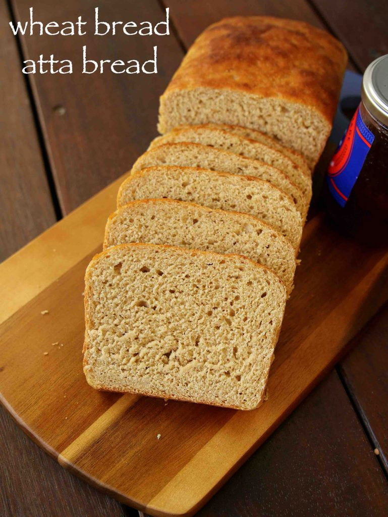 ( ภาพบน ) ขนมปังฮวีท-เบรดเป็นขนมปังที่ทำมาจากแป้งโฮลวีตที่ไม่ผ่านการขัดสี ส่วนผสมเหมือนขนมปังขาว แต่ใช้แป้ง 2 ชนิด เป็นส่วนผสมแทนอย่างละครึ่ง |