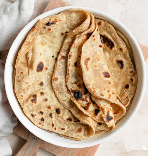 ( ภาพบน ) โรตี เป็นอาหารชนิดหนึ่ง ทำจากแป้ง นวดแล้วนำไปทอดหรือปิ้งเป็นแผ่นบาง ๆ รับประทานเป็นของหวานหรือรับประทานพร้อมอาหารคาวอื่น ๆ ในประเทศไทยมักจะคุ้นกับโรตีที่ทอดเป็นแผ่นนุ่ม ราดด้วยนมข้นและน้ำตาลทรายเป็นของหวาน คำว่า โรตี เป็นคำศัพท์ที่พบได้ในหลายภาษา ได้แก่ ภาษาฮินดี , อุรดู , ปัญจาบี , โซมาลี , อินโดนีเซีย และมลายู ซึ่งทั้งหมดมีความหมายว่า ขนมปัง ชื่อ โดยทั่วไปแล้ว คำว่า โรตี นั้น อาจหมายถึง ขนมปัง หรือผลิตภัณฑ์จากแป้งหลากหลายชนิด เช่น จปาตี และผุลกา ซึ่งผลิตภัณฑ์แป้งหรือขนมปังแต่ละอย่างต่างก็มีชื่อเฉพาะแตกต่างกันไป สำหรับในภาษามราฐี มักจะเรียกว่า จปาตี หรือ โปลี ส่วนในคุชรตี เรียกว่า "โรตลี" ในภาษาปัญจาบีเรียกว่า ผุลกา ( Phulka ) และมักจะใช้เรียกขนมปัง โดยมากจะการใช้คำนี้จะหมายถึงแป้งแบนกลม ไม่ขึ้นฟู อย่างที่รับประทานกันทั่วไปในประเทศอินเดียและปากีสถาน ส่วนแป้งแบบใส่ยีสต์ให้ขึ้นฟูนั้น จะเรียกว่า "นาน" ( naan ) ซึ่งเดิมมีกำหนดจากทางตะวันตกเฉียงเหนือของเอเชียใต้และเอเชียกลาง บางครั้งชาวตะวันตกจะเรียกโรตีแบบนี้ว่า 'balloon bread' หรือ ขนมปังพอง นอกเอเชียใต้ ในประเทศมาเลเซีย คำนี้มีความหมายรวมถึงผลิตภัณฑ์แป้งทุกอย่าง รวมทั้งขนมปังแบบตะวันตกและขนมปังดั้งเดิมของปัญจาบี โรตีนั้นส่วนใหญ่จะทำมาจากแป้งข้าวสาลี ทอดบนกระทะแบนหรือโค้งเล็กน้อย เรียกว่า ตาวา ( tawa ) โดยนิยมทานเป็นอาหารหลักร่วมกับกับข้าวหรืออาหารอื่น อาจทาด้วยเนยใสหรือโยเกิร์ตขาว โรตีไทย ในประเทศไทยนั้น คำว่า "โรตี" หมายถึง แป้งชนิดที่เรียกว่า "ไมดา ปะระถา" ซึ่งในภาษามลายู เรียกว่า "โรตี จะไน" และในประเทศสิงคโปร์ เรียกว่า "โรตีประตา" ปกติจะโรยหน้าด้วยนมข้นหวาน น้ำตาลทราย บางครั้งก็ใส่ไข่ไก่ลงไปขณะกำลังทอดแป้งบนกระทะ รับประทานขณะร้อนหรืออุ่น ปัจจุบันมีการทำโรตีหลายรสชาติ โดยที่นิยมกันมากคือการใส่กล้วยหอม โดยนำมาสับเป็นแว่นเล็ก ๆ แล้วโรยไปบนแป้งโรตีขณะทอดร้อน ๆ นอกจากนี้ยังมีโรตีราดแยมผลไม้และใส่เครื่องปรุงรสอื่น ๆ เช่น ช็อกโกแลต กาแฟ และยังมีโรตีพิซซ่า ซึ่งเป็นการผสมผสานรสชาติของตะวันออกและตะวันตกไว้ด้วยกัน โรตีในประเทศไทย มีทั้งในร้านอาหารและขายตามรถเข็น ผู้ขายจะทอดโรตีตามคำสั่งลูกค้า เมื่อปรุงเสร็จ จะพับและม้วนเป็นท่อนยาว ห่อด้วยกระดาษ หากเป็นโรตีที่มีไส้ ก็จะมีการหั่นเป็นชิ้นสี่เหลี่ยมเล็ก ๆ ราดด้วยนมข้นและน้ำตาลทราย ปัจจุบันพบว่าผู้ขายจำนวนมากในประเทศไทยเป็นผู้สืบเชื้อสายมาจากเอเชียใต้ ได้แก่ ปากีสถาน อินเดีย และบังกลาเท