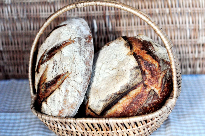 ( ภาพบน ) ขนมปังชนิดนี้ทำจากแป้งสาลีดูรัม และใช้วิธีการหมักแป้งข้ามคืนจนมีกลิ่นเปรี้ยว ซึ่งเกิดจากยีสต์ จึงเรียกว่าซาวร์โด ขนมปังธรรมดาเกิดจาก ยีสต์อุตสาหกรรม แต่ Sourdough คือ วัฒนธรรมของฝรั่งตกทอดกันมา คือการเอา Yeast ที่อยู่ในธรรมชาติ นำมันมาเลี้ยง ให้อาหารมัน ให้มันแข็งแรง พอมันโตเรานำมันมาทำขนมปัง เขาจะมีเอกลักษณ์ ไม่เหมือนชาวบ้าน เพราะ Yeast มันค่อยๆย่อยแป้งไปเรื่อย เราจะได้กลิ่นที่เราไม่คุ้นเคย ไม่เหมือนการกิน ขนมปัง ธรรมดาเลย และนี่แหละ คือ ซาวโดวจ์ Sourdough อร่อยกว่า ยังไง? แต่ละบ้านของฝรั่ง เดิมทีเขาเลี้ยงยีสต์ตามธรรมชาติ เพื่อมาทำขนมปังกันเอง สุดท้ายแต่ละบ้านก็มีขนมปัง ที่รสชาติไม่เหมือนกันซักบ้าน คล้ายๆ เรากินผัดกระเพรา บ้านไหนก็ไม่เหมือนกัน เคล็ดมันอยู่ที่ การเลี้ยง Yeast ครับ และ Yeast เลี้ยงเองนี้เอาไปทำอะไรก็ได้ แม้แต่ Bagel | Brioche | หรือ โดนัท Bomboloni ก็ตาม ยีสต์ ที่คนนิยมเลี้ยงจะมี 2 แบบหลักๆ คือ 1. เลี้ยงยีสต์ จากผลไม้ 2. เลี้ยงยีสต์ จากแป้งกับน้ำ สดๆเลย การที่เราเลี้ยงยีสต์เองแบบนี้ เราสามารถใช้ผลไม้อะไรก็ได้ เช่น แอปเปิ้ล ลูกเกด เปลือกมังคุด ส้มที่สุกมากแล้ว สัปปะรด ยีสต์เขาอยู่กับผลไม้แบบนี้ มันจะค่อยๆกินน้ำตาลแล้วโตขึ้น เราก็นำเอายีสต์นั้นค่อยๆ เลี้ยง ให้หาอาหาร จนมันโตแข็งแรง เราก็นำมาใช้ทำขนมปังได้ ตัวขนมปังจะมีกลิ่นของผลไม้ที่เราใช้มาทำยีสต์ , sourdough จะมีกลิ่นแอปเปิ้ลจางๆ หรือ กลิ่น องุ่นจางๆ แล้วแต่ผลไม้ที่เรานำมาใช้ เขาจะหอมมาก และ texture จะนุ่ม เคี้ยวง่าย ชุ่มชื้น เวลากินเข้าไป ก็จะย่อยง่าย นั่นเพราะยีสต์เขาโตช้า เราเลยหมักแป้งนานกว่าปกติ มันค่อยๆย่อยแป้งเราไปเรื่อยๆ จนแป้งเรามี texture ที่เป็นเอกลักษณ์พิเศษส่วนยีสต์ จากแป้ง กับ น้ำ เพียวๆ นั้น นั่นคือเก็บยีสต์จากอากาศ มาค่อยๆ ย่อยแป้งสาลี กับ น้ำตาล นั่นแปลว่า Yeast ในอากาศมันน้อยมาก เราต้องค่อยๆเลี้ยง ให้อาหารไปเรื่อย จนยีสต์โตขึ้น และเมื่อมันโต มันจะมีกลิ่นที่หอมมาก fruity นิดๆ แต่นั่นคือกลิ่น Yeast จากธรรมชาติจริงๆ ไม่สามารถหาได้ จาก ยีสต์อุตสากรรมเลย การหมัก และ เลี้ยง Yeast เองนี้ เหมือนกับ ได้กินขนมปัง homemade อย่างแท้จริง เขาคือ wave ที่ 3 ของวงการ bakery มันคือรสชาติที่แปลกใหม่ และหาไม่ได้ 10 ร้าน ก็ ต่างกัน 10 ร้าน เขาคือ SIGNATURE ข้างบนนี้ เอาข้อมูลมาจาก : https://thai.luxurysocietyasia.com/ขนมปังชื่อเรียก-ประเภท-ภ/ และ https://readspoonful.co/2020/04/12/sourdough/ |