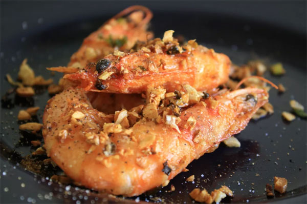 ( ภาพบน ) ชื่ออาหาร : Chinese-Style Deep-Fried Salty Shrimp |