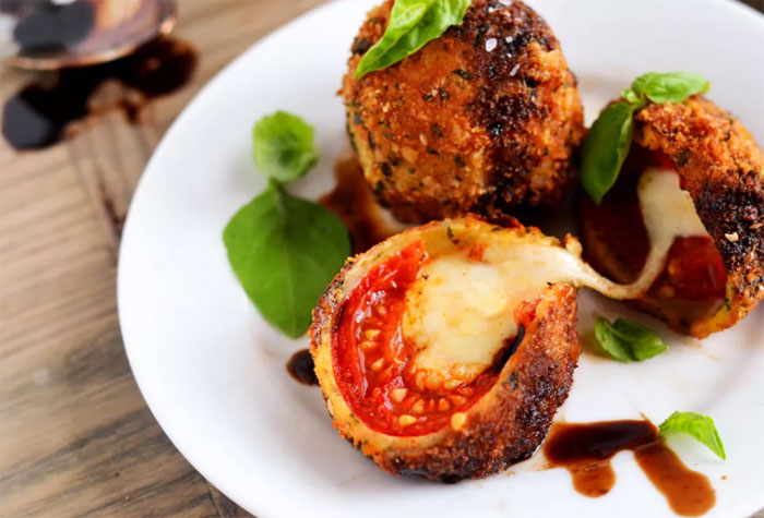 ( ภาพบน ) ชื่ออาหาร : Fried Caprese Bombs |