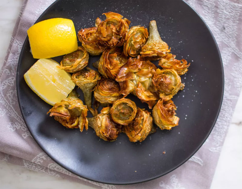 ( ภาพบน ) ชื่ออาหาร : Roman-Jewish Fried Artichokes ( Carciofi alla Giudia ) |