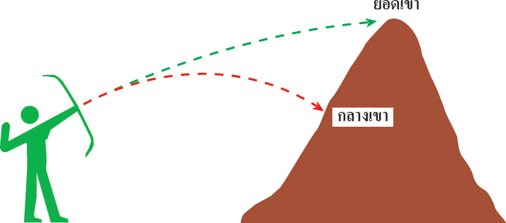 ถ้าเราไม่มีประสบการณ์การยิงลูกธนูไปที่ภูเขามาก่อน แล้ววันหนึ่งสมมติว่าเราต้องการจะยิงลูกธนูไปที่ภูเขาสูงลูกหนึ่ง โดยมีความคิดว่า ต้องการให้ลูกธนูไปตกที่กลางเขา จากนั้น เราก็ระดับคันศรให้ตรงไปที่ระดับ "กลางเขา" แล้วค่อยปล่อยลูกธนูออกไป แต่แล้ว ด้วยแรงโน้มถ่วงของโลก มันก็ดึงให้ลูกธนูนั้นตกลงไปที่ "ตีนเขา" แทนที่จะไปยัง "กลางเขา" อย่างที่เราตั้งใจ สิ่งนี้ให้ความคิดอะไรแก่เราบ้าง นั่นคือ 1.การที่เราไม่มีประสบการณ์การยิงลูกธนูไปที่ภูเขามาก่อน ทำให้เราคิดเอาเองว่าเมื่อเล็งศรไปที่กลางเขา ลูกศรก็น่าจะตกไปที่กลางเขา แต่ความจริง มันกลับย้อยตกลงไปที่ตีนเขา ไม่ตรงอย่างที่เราตั้งใจไว้ ดังนั้น ถ้ามีคนที่มีประสบการณ์มาสอนเรา ตั้งแต่ก่อนยิงธนู เราก็คง ไม่เสียเวลา ต้องมายิงใหม่อีกครั้ง (คือมาสอนเราว่าให้เล็งให้สูงกว่านี้ เพื่อให้ลูกธนูตกลงมาที่กลางเขาพอดี) 2.เหตุใด ผมถึงเอาเรื่องภูเขามาพูด คำตอบก็คือ การที่เราจะเริ่มเล่นกล้าม ณ.วันนี้ คุณจะต้องมีเป้าหมายที่ชัดเจนเสียก่อน ว่าจะเล่นไปเพื่ออะไร เพราะการเล่นแบบไม่มีเป้าหมายมันเสียเหงื่อเปล่า ,ไม่สนุก ,ไม่มีอะไรต้องลุ้น โดยที่ผมขอสมมติว่าภูเขาลูกนี้ คือความสำเร็จในการเล่นกล้าม - โดยยอดเขานั้น คือเป้าหมายการเล่นกล้ามให้ได้อย่างสูงสุด เพื่อการขึ้นประกวด - โดยกลางเขานั้น คือเป้าหมายการเล่นกล้ามให้ได้แบบพอมีกล้ามบ้าง แต่ไม่ต้องถึงกับขึ้นประกวด - โดยตีนเขานั้น คือ การไม่ได้อะไรจากการเล่นกล้ามเลย ลูกศรไม่ได้แตะตัวภูเขาเลย 3.แรงดึงดูดที่ดึงให้ลูกศร ตกลงมาในระดับต่ำกว่าที่เราเล็งเป้าหมายไว้ตอนแรก เปรียบได้กับ ความคิดบางอย่างที่เกิดขึ้นในอนาคต อันได้แก่ ความเบื่อหน่าย ,ความคิดว่าเล่นกล้ามแล้วไม่ได้ผล ,การบั่นทอนจิตใจโดยคนรอบข้างที่ไม่อยากเห็นเรากล้ามใหญ่กว่า ฯลฯ สิ่งที่ผมกำลังจะบอกคุณเกี่ยวกับภาพแรก (ข้างบน) นั้นคือ อย่าเพียงตั้งเป้าหมายว่า ขอเล่นแค่พอมีกล้าม ,ขอเล่นแค่หุ่นนายแบบ ,ขอเล่นแค่เพียงลดความอ้วน (แม้ว่าจริงๆแล้วคุณก็ต้องการเพียงแค่นั้น) เพราะนั่นเปรียบเหมือนคุณเพียงแค่เล็งลูกศรไปที่กลางเขา เมื่อคุณปล่อยลูกศรออกไปแล้ว ลูกศรของคุณอาจต้องเจอแรงดึงดูด (อันได้แก่ความเบื่อหน่าย ,ความคิดว่าเล่นกล้ามแล้วไม่ได้ผล ,การบั่นทอนจิตใจโดยคนรอบข้าง) จนผลออกมาคือลูกศรไปตกที่ตีนเขา คือคุณไม่ได้มีกล้ามเนื้อใดๆขึ้นมาเลย เสียเหงื่อ เสียเวลาเปล่า |