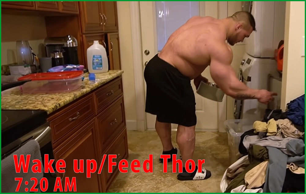 ( ภาพบน ) จากนั้นนิคก็เอาอาหารเสริมกระป๋องต่างๆออกมาจากตู้ เพื่อจะนำไปปั่นเป็นเชค ( ดูที่เวลา 7.10 น.นะครับ ) |