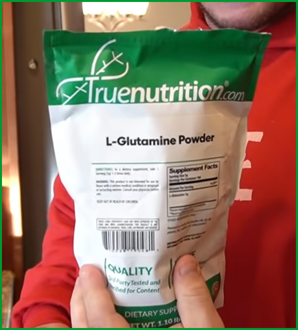 ( ดูที่เวลา 9.25 น.ของวีดีโอ ) 4. L-Glutamine Powder ใส่ไป 4 ช้อนตวงที่ให้มาพร้อมกับตัวอาหารเสริม |