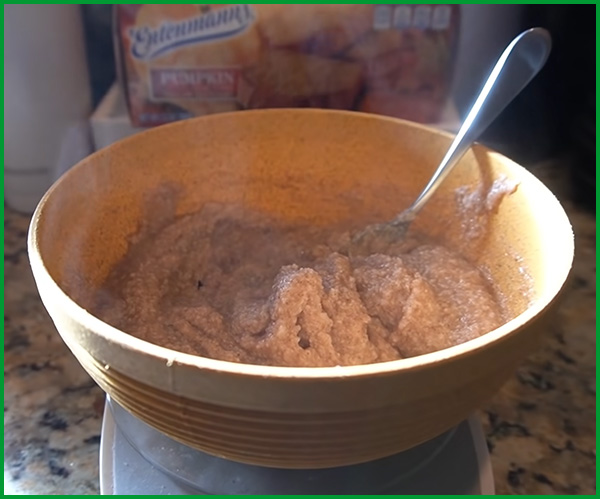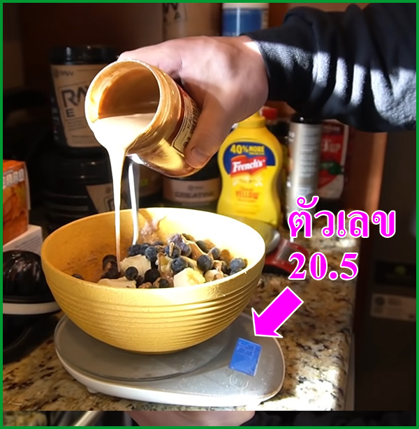 ( ดูที่เวลา 13.10 น.ของวีดีโอ ) ใส่เนยอัลมอนด์ 20.5 กรัม |