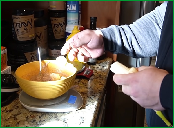 การทานอาหารมื้อที่ 1 ตอน 9.22 น. ( มื้อก่อนออกกำลัง ) ( ข้างล่างนี้ ) |