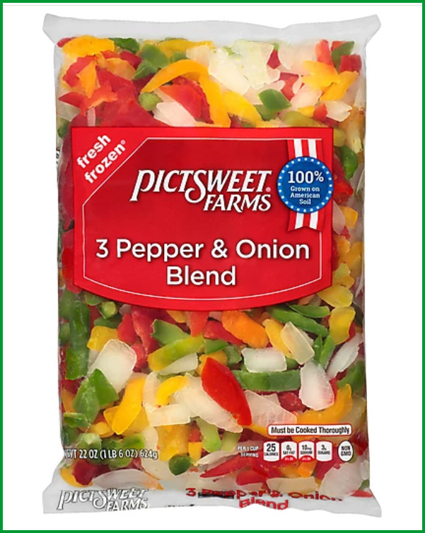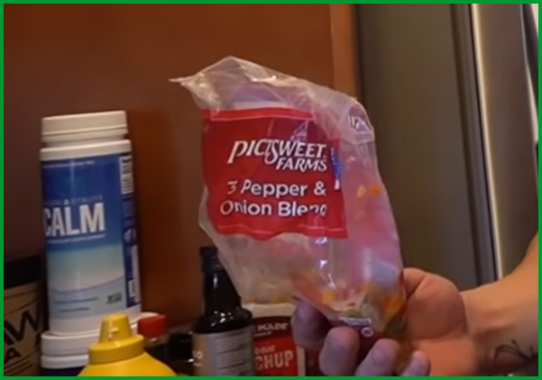 ( ดูที่เวลา 13.40 น.ของวีดีโอ ) ใส่พริกไทยและหัวหอมแช่แข็ง |