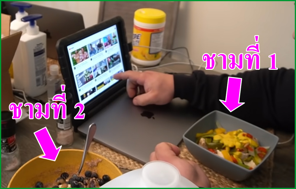 ( ดูที่เวลา 13.58 น.ของวีดีโอ ) มื่อที่ 1 นี้ นิคจะทานสองชามครับ |