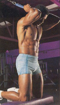 และตั้งเข่าไว้บนเบาะ จากนั้นจัดให้มืออยู่ด้านหลังศีรษะ